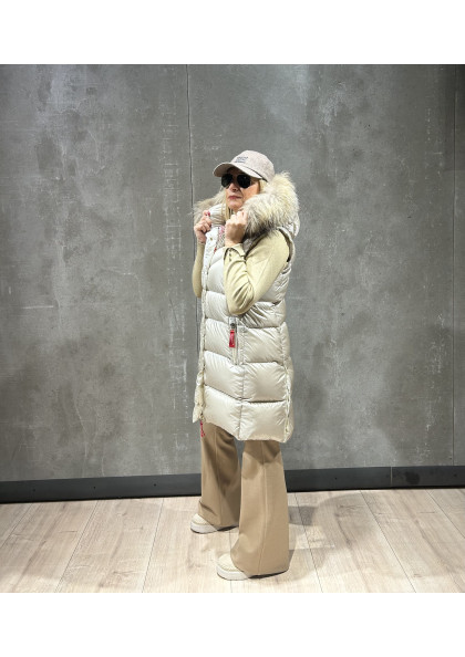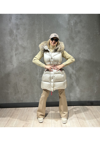 El chaleco de plumas ODIL combina funcionalidad y estilo con su diseño ligero y térmico. Cuenta con una capucha adornada con pelo natural que aporta calidez y un toque...