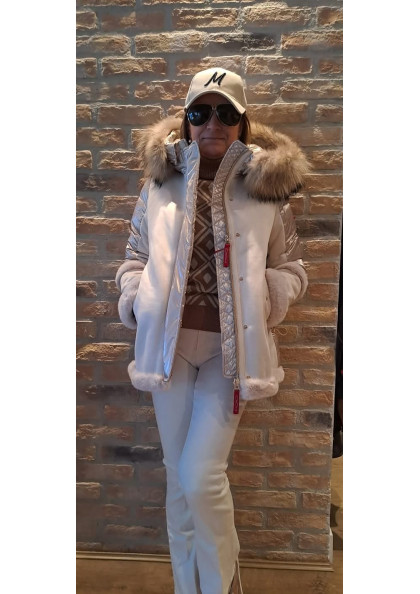 Cazadora de plumas RANDY 813 combina funcionalidad y estilo con su capucha en blanco que aporta un contraste elegante. El pelo de la capucha, que mezcla el tono principal de...