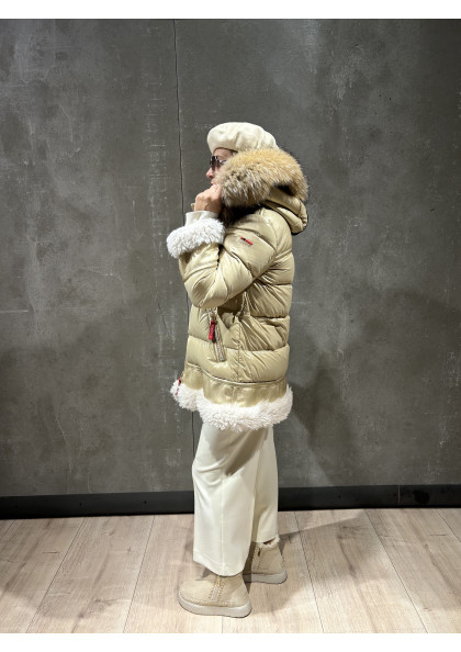 Cazadora de plumas ALITA, brinda un aislamiento térmico excelente para los días más fríos. Su capucha, decorada con pelo en tonos armoniosos y detalles en franjas blancas,...