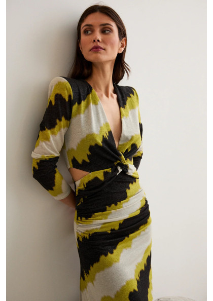 El vestido Orinoco seduce por su estampado vibrante e inolvidable. Su escote en la espalda de finas tiras cruzadas lo convierte en una pieza sensual y perfecta para lucir piel....