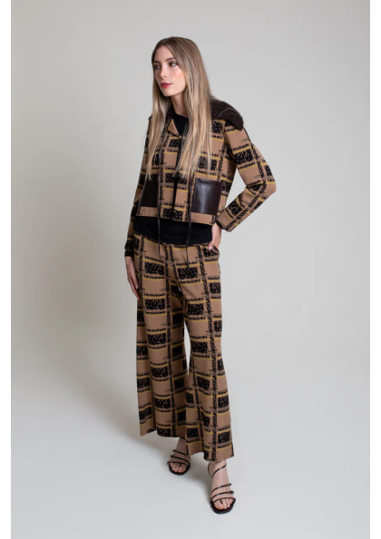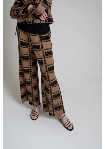 Pantalón ancho de punto en jacquard de cuadros. Pequeño bolsillo en parte trasera. Cintura con goma.