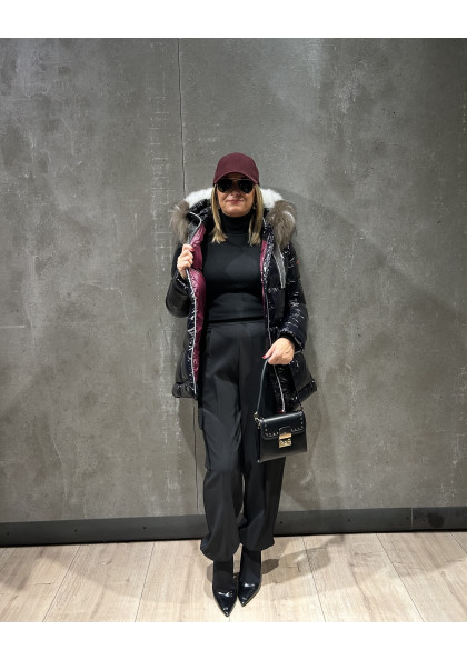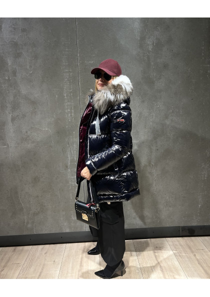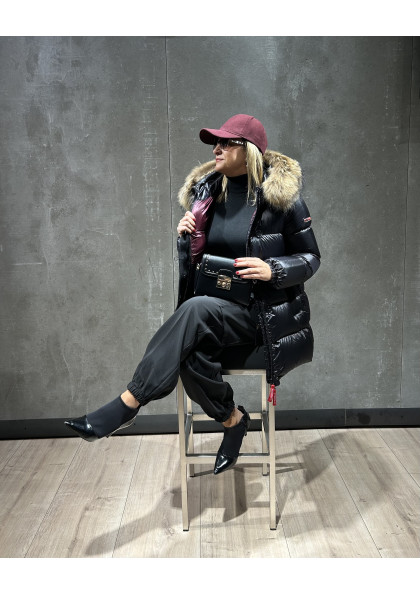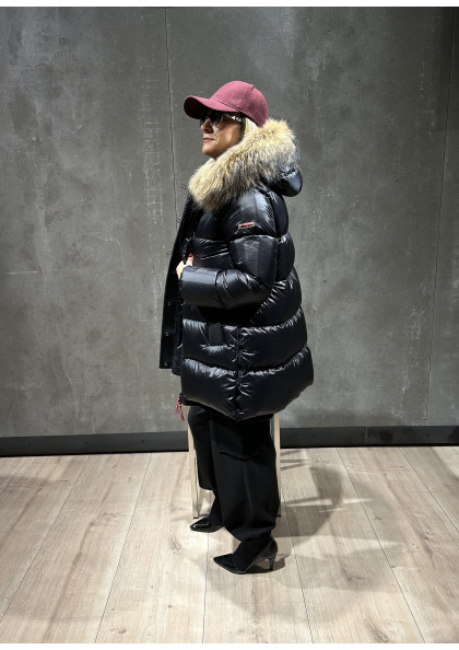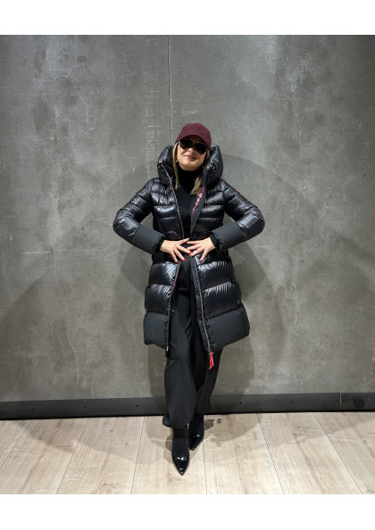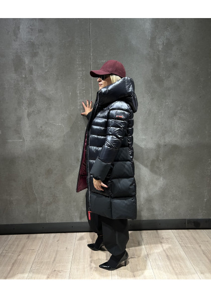 Plumífero STEFFIE con tejido combinado en mate y brillo. Tiene un elegante diseño, con largo por encima de la rodilla. Mangas estilo gabardina. Capucha con un espectacular...