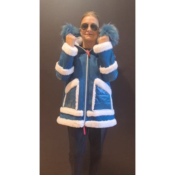 La chaqueta larga de plumas y napa IRIEL es el abrigo perfecto para la temporada otoño invierno, tiene un estilo juvenil a la vez que elegante. Bolsillos laterales y cierre frontal con con cremallera, capucha con pelo desmontable en color al tono. Su diseño permite adaptar tu look combinando funcionalidad con elegancia. Perfecta para quienes buscan una prenda que se ajuste a múltiples estilos.