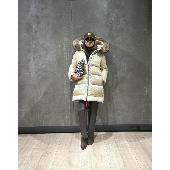 LOREA es un plumas que fusiona sofisticación y funcionalidad, combinando un tejido mate con detalles brillantes en el mismo tono para un acabado armonioso y moderno. Incluye una capucha con pelo natural que proporciona calidez y un toque de elegancia natural, perfecta para los días fríos sin renunciar al estilo.
