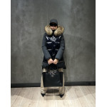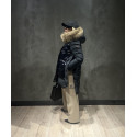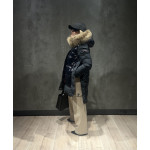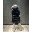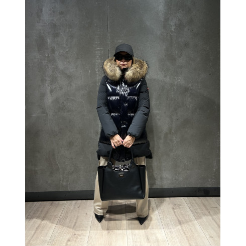 ASHERA plumas que destaca por su combinación única de tejidos con acabado brillante y mate, que aporta un elegante contraste visual. Aperturas laterales con botones. Su capucha está adornada con pelo original a tono, complementada por franjas blancas y negras que realzan su diseño sofisticado. Ideal para quienes buscan una prenda con estilo y personalidad en cada detalle.