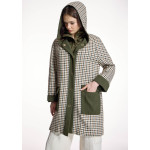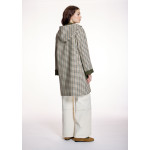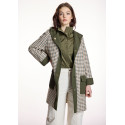 Parka larga de cuadros con bolsillos y puños en diferente textura. Forro de borreguillo.