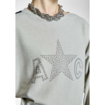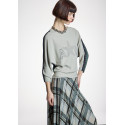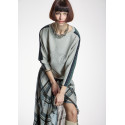 Jersey bicolor crudo y camel con bonitas letras de lentejuelas .Las tachas en las mangas de dan a la prenda un aire moderno y único.