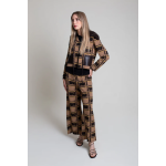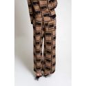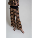 Pantalón ancho de punto en jacquard de cuadros. Pequeño bolsillo en parte trasera. Cintura con goma.