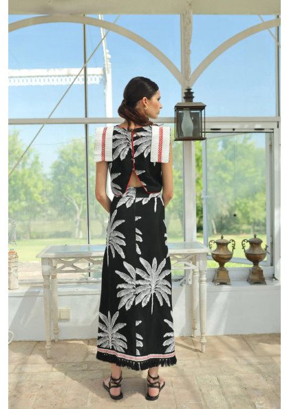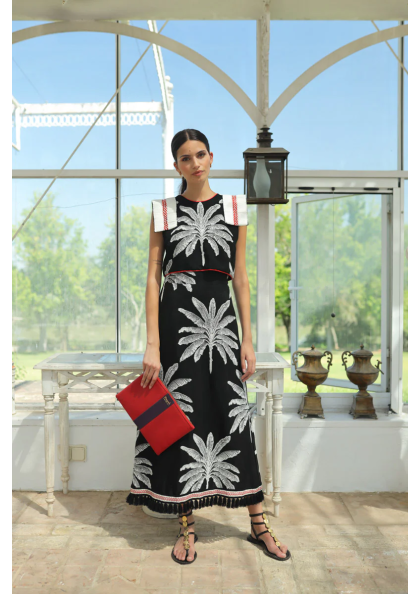 Top confeccionado en punto tricolor, con escote barco y estructura entallada. Combina bloques de color en contraste que estilizan la figura y aportan dinamismo al look. Perfecto para combinar con pantalones o faldas de la colección en eventos de día o celebraciones con dress code casual chic.