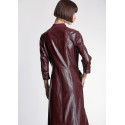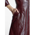 Vestido midi entallado, en un favorecedor color granate con cremallera central, cuello de punto y bolsillos de tapeta.